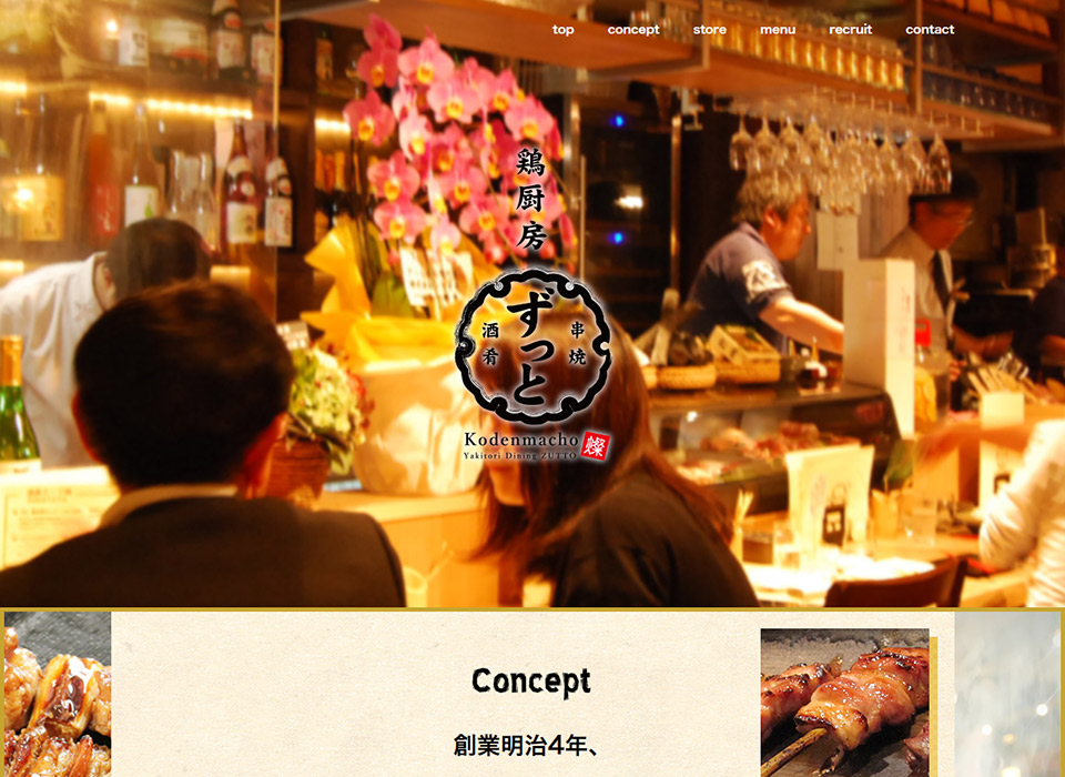 東京の小伝馬町に新しくできた鶏肉料理中心の居酒屋、鳥厨房ずっと様のサイトを作成させて頂きました。「若い女性やお一人のお客様でも気軽に入られるモダンであたたかい雰囲気のお店」というコンセプトに合わせて、お店の明るくおしゃれな雰囲気をWEBサイトでも再現しました。