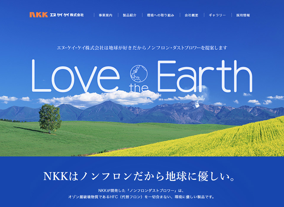 エアゾール製品を製造・販売されているNKK株式会社様の、コーポレートサイトをリニューアルさせて頂きました。最初、先方様は「ひとまず形になっていればそれでいい」というお考えだったのですが、TOPページのデザインをご提出すると、とても乗り気になってくださいました。環境に優しい製品であることが一番の売りですので、そこをアピールできるよう構成しました。NKK様のご協力もあり、ご満足いただけるサイトになりました。
