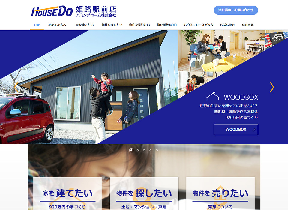 House Do 姫路駅前店様のコーポレートサイトを作成させて頂きました。企業様からは「きっちりとしている」+「取っつきやすさ」を両立させたデザインを求められることが多く、このサイトもそのひとつです。素材がほとんどない中で作成しましたが、喜んで頂けました。