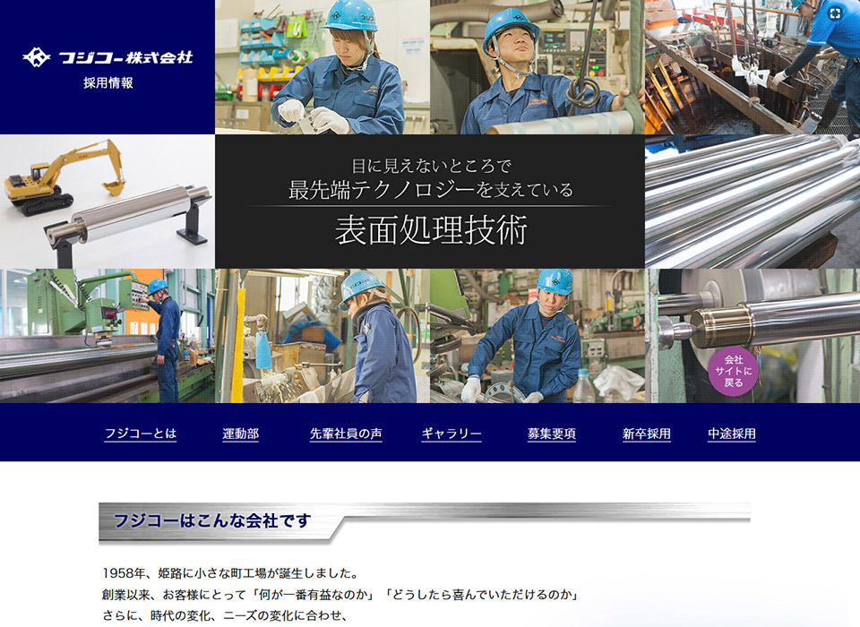フジコー様の採用サイトを作成させて頂きました。会社のカラーと、欲しい人物像がはっきりしていらっしゃったので、ぶれずに構成することができました。先方様からの評判も良く、ありがたいです。